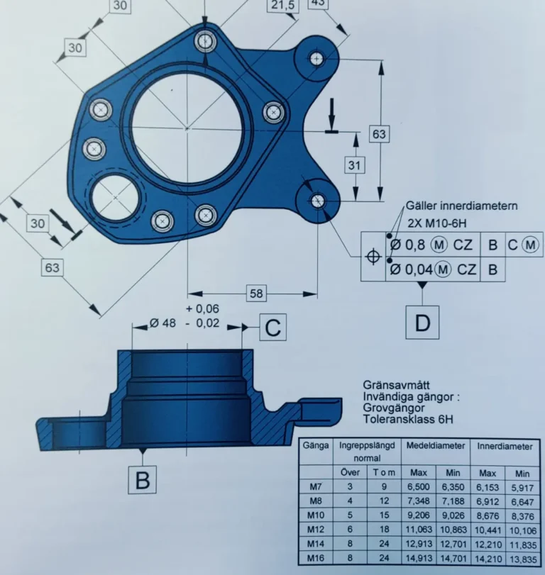We also assist in the preparation of measurements, where the drawing forms the basis for how control points and measurement strategies are developed. With our experience from the automotive industry, we often handle complex, classified drawings that require high accuracy and understanding of geometric tolerances.